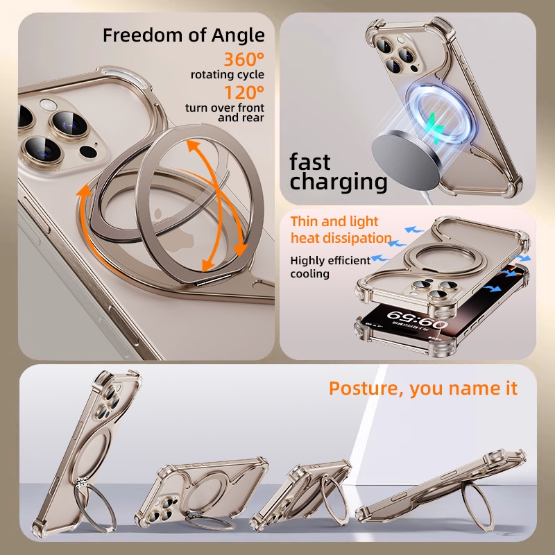 Aluminium Alloy Magnetic Frameless Phone Case For Iphone 15 16 Pro Max With 360° Rotation Stand Bumper Shockproof Metal Cover , Find Complete Details about Aluminium Alloy Magnetic Frameless Phone Case For Iphone 15 16 Pro Max With 360° Rotation Stand Bumper Shockproof Metal Cover.